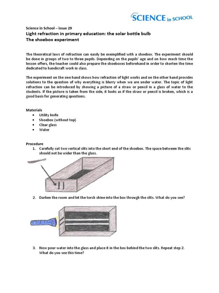 Light Refraction Science Experiment from coolscienceexperimentshq.com Turn on the torch, make sure the room is dark, then shine . Check out our selection of light and optics equipment. Kids will love trying this activity over and over. This simple light science experiment introduces three new ones:. Refraction ( bending of light ) happens when light travels between two mediums. Find optics bench equipment, binoculars, and spectroscopes. Light refraction has never been this fun. Sound light experiment diy science materials kits kids educational toys.